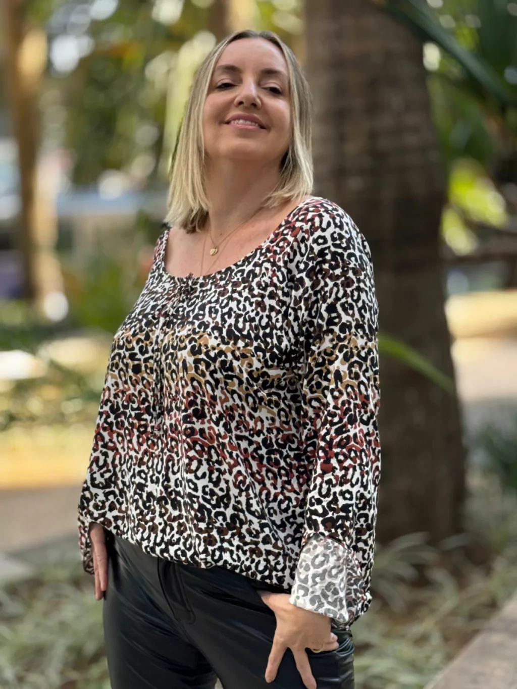 Combine a Bata Andy com jeans, calças de couro ou saias para criar looks autênticos e cheios de personalidade. Seja para o trabalho, passeios ou viagens, esta bata é a escolha perfeita para mulheres modernas que não abrem mão de se sentir bem vestidas e confiantes.