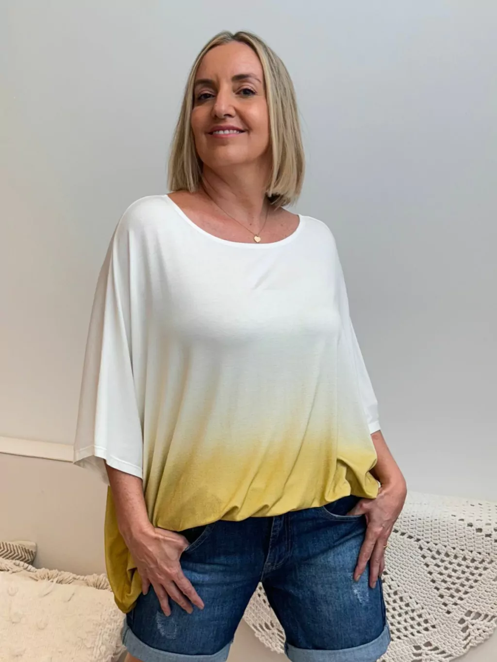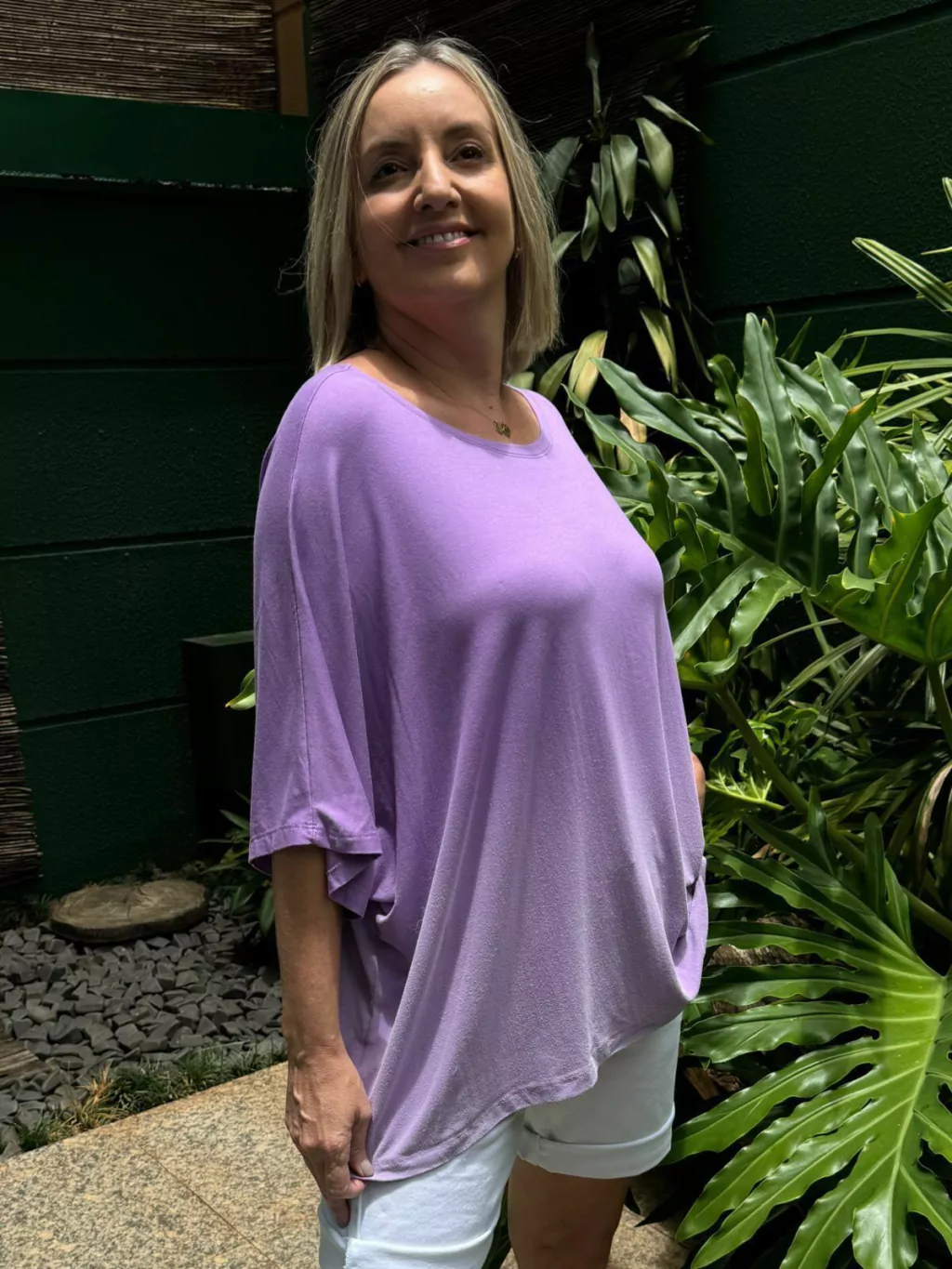A nossa Blusa Gabi Jateada é feita em viscolycra premium, super macia e anti-pilling, a modelagem dela é ampla, manga 3/4 e decote redondo