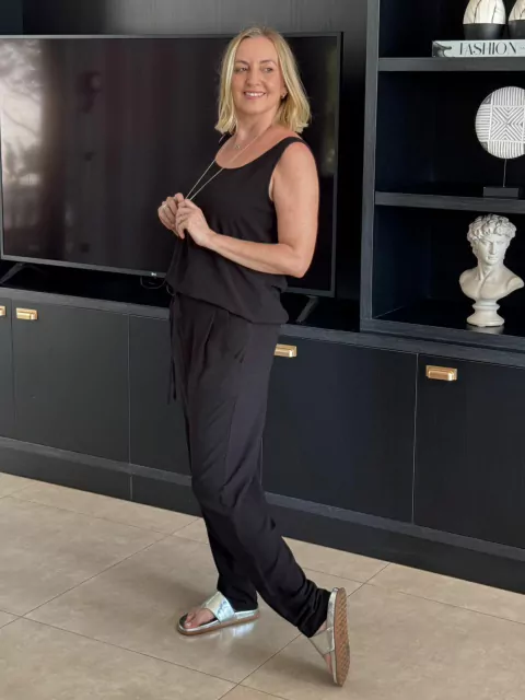 A regata possui decote discreto e a calça com cintura ajustável garante praticidade sem perder o estilo. Ideal para um look casual chic!